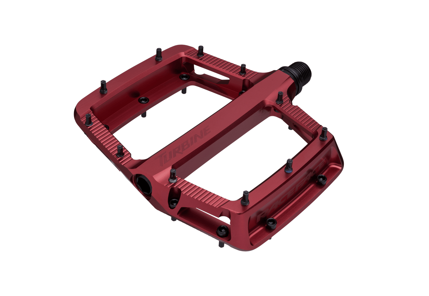 Race Face Turbine Pedals are built for ultimate grip, with concavity in all directions. Featuring an Asymmetric pedal platform, the Turbine Pedal is designed to fit your shoe perfectly, with no extra pedal hanging out to get caught on the trail. Race Face has eliminated the bearing bump, using a simple and well-proven architecture for maximum comfort and durability.